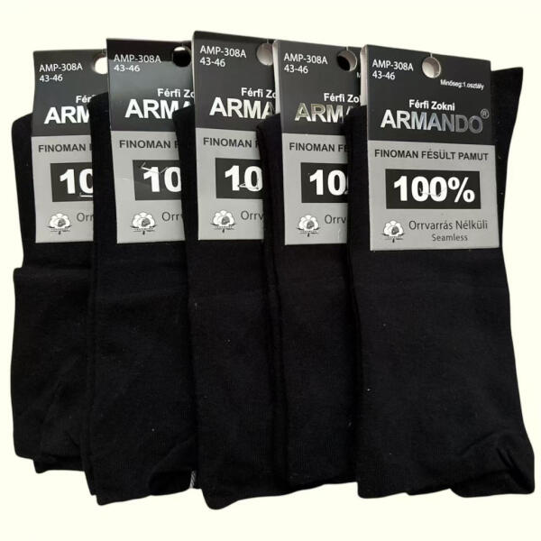 Armando férfi klasszikus pamut Guminélküli zokni 5 pár, orrvarrás nélküli, Fekete (AR308A)