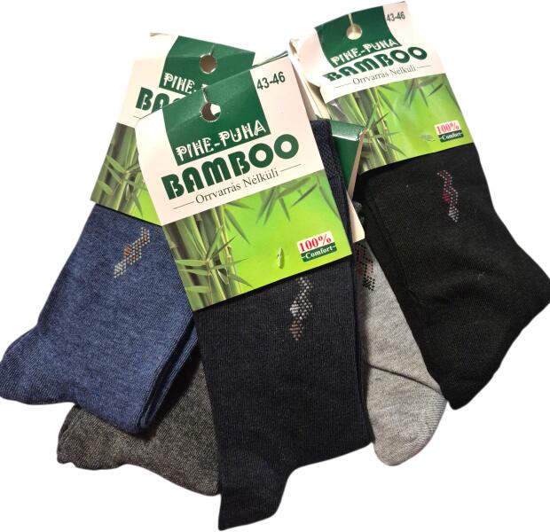 Pihe-Puha Férfi, bambusz zokni, orrvarrás nélküli, 5 pár/csomag, mintás