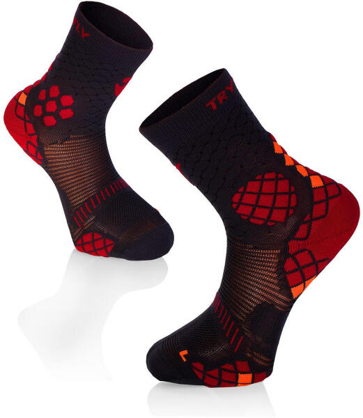 TRY TO FLY Kompressziós antracit-piros sportzokni 36 színes